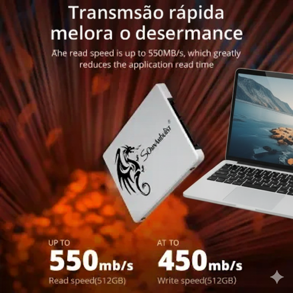 • Velocidade: Leitura 550 MB/s, Gravação 450 MB/s